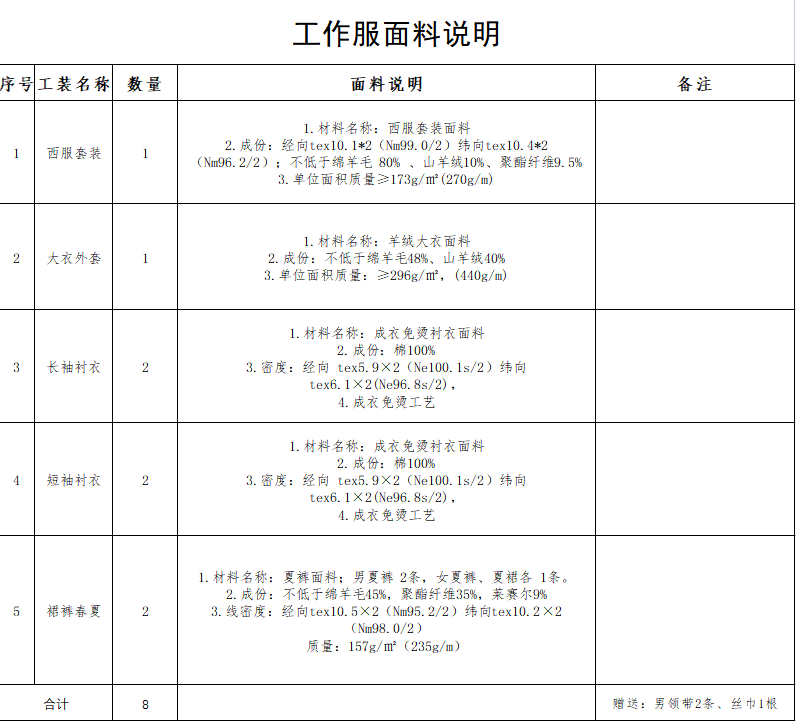 4.采購規(guī)模及內(nèi)容概述:眉山市東岸建設(shè)有限公司服裝采購共計61套(暫定)。